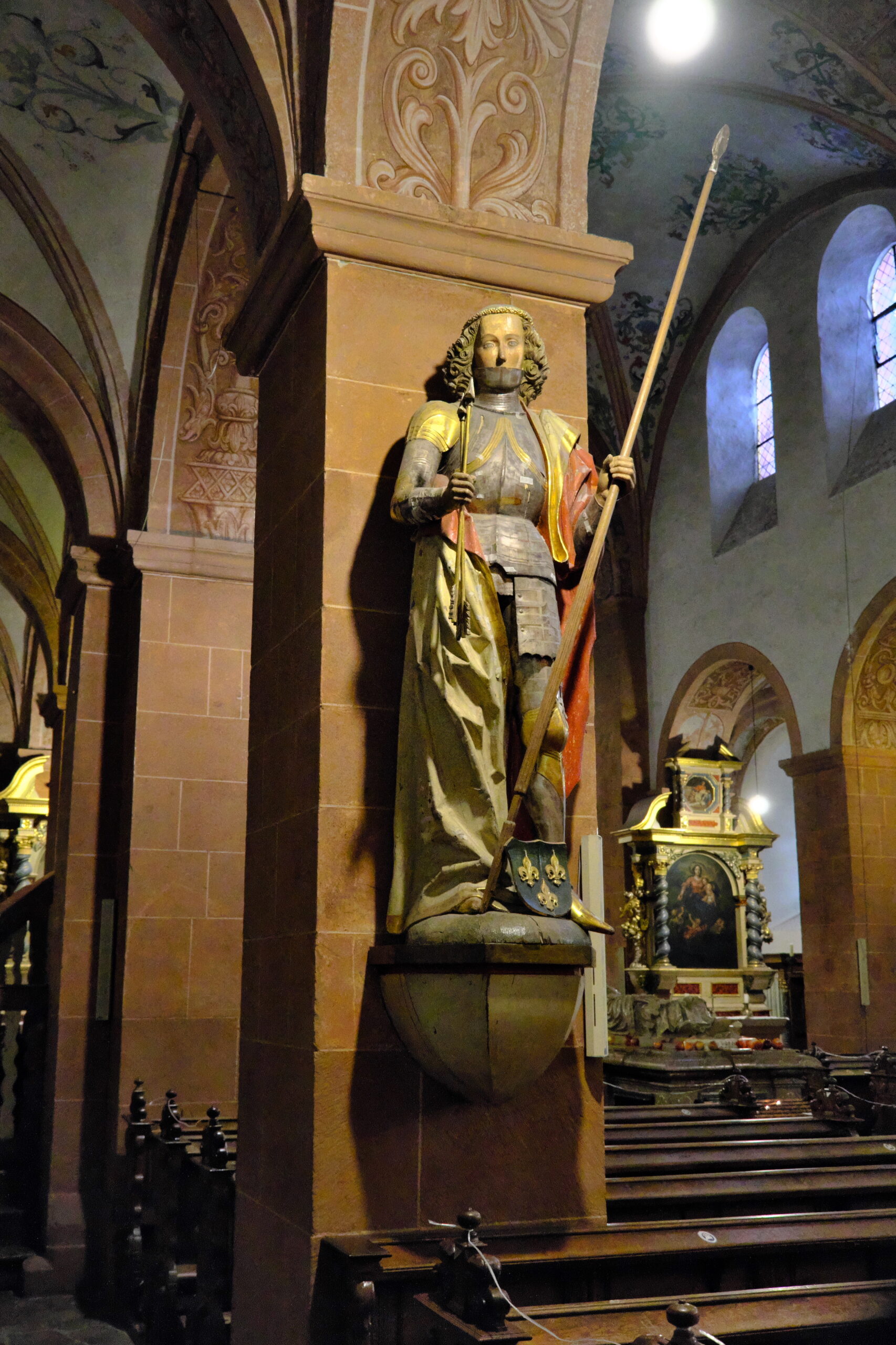 Die Figur des hl. Potentinus aus dem 15. Jahrhundert zeigt den Schutzpatron der Basilika Steinfeld.