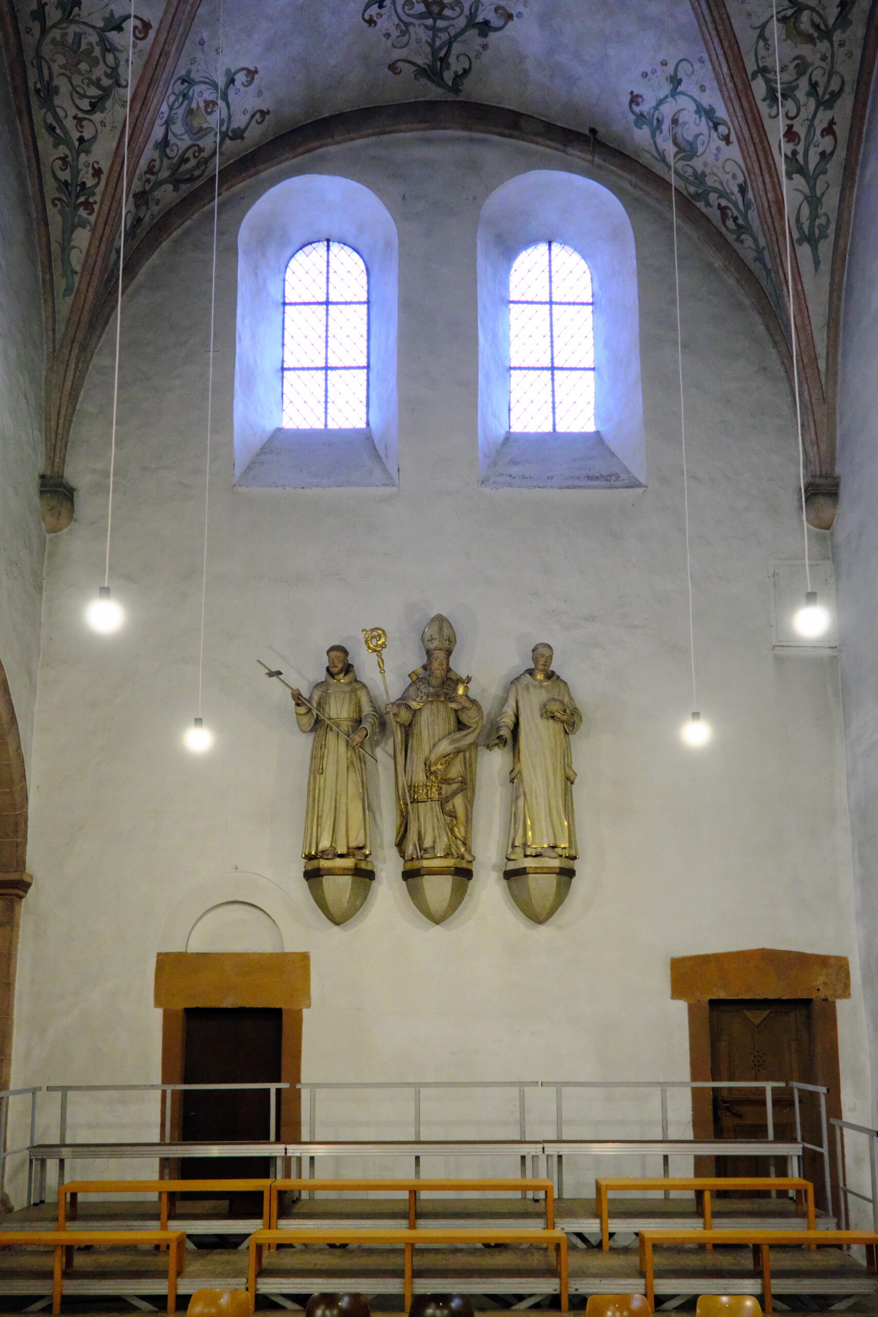 Die Dreiergruppe an der südlichen Wand des südlichen Querhauses zeigt die Gründer des Klosters Steinfeld – die sogenannten Prämonstratenser Statuen: